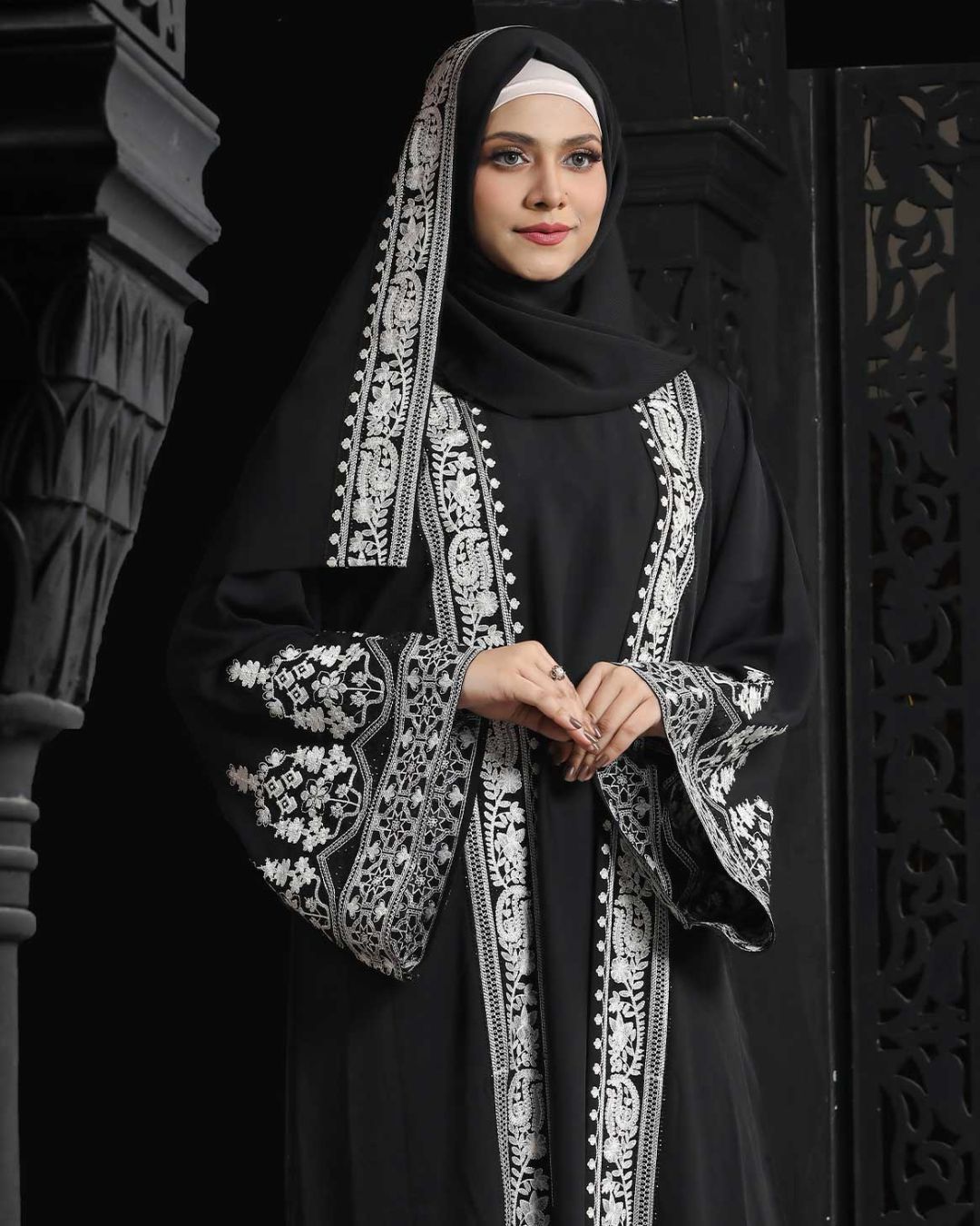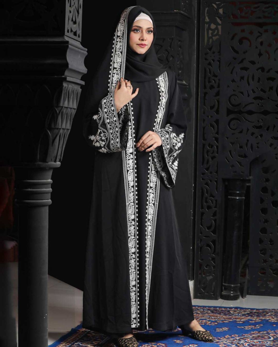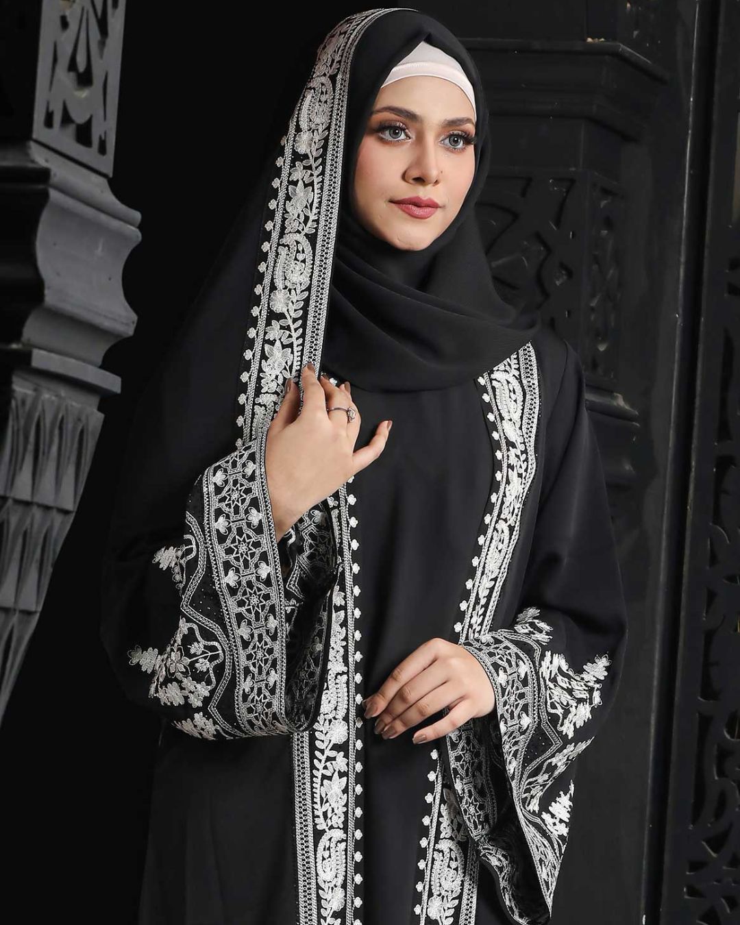 Black Color Attached Koti Borka with Embroidery & Stone Work