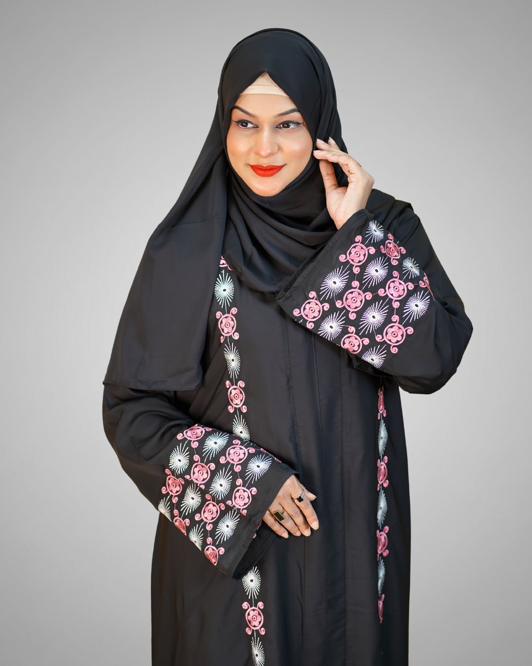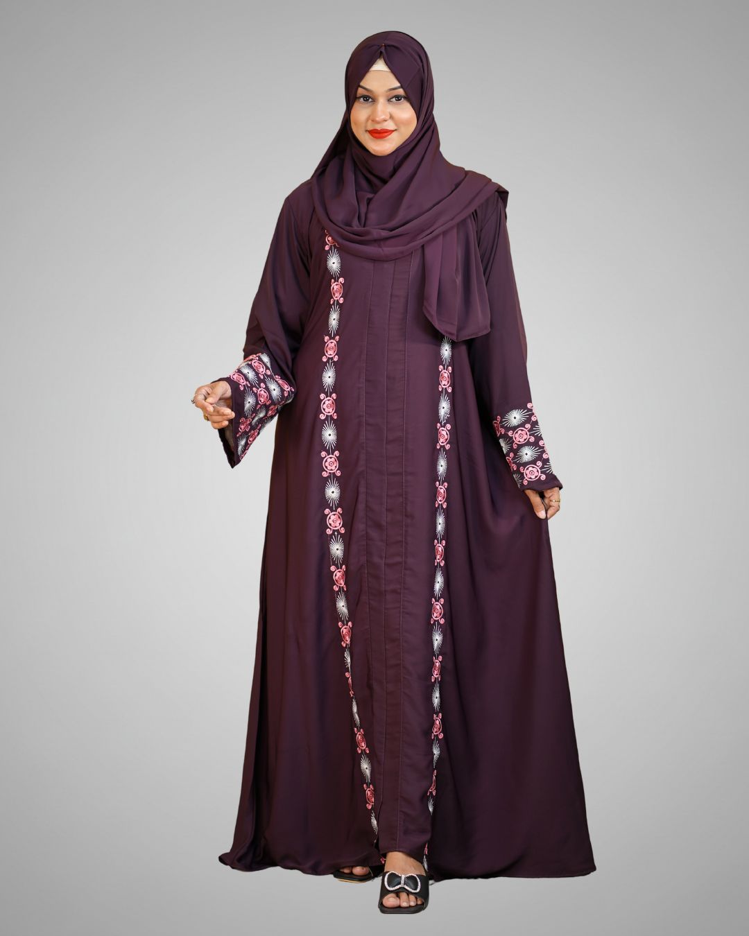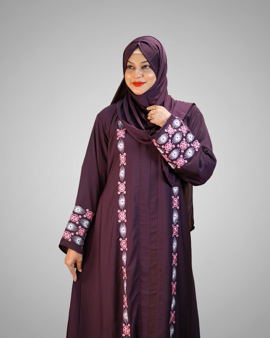 Luxury Cherry Fabric Borka with Embroidery Design